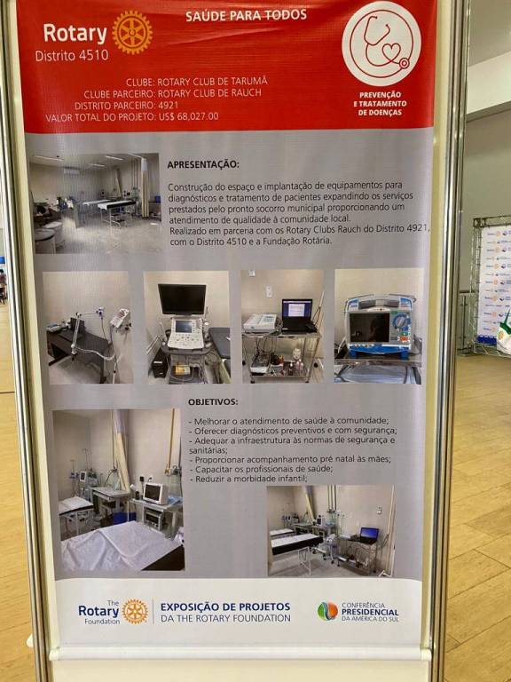 Com a participação do Governador Distrital 2021-22(DISTRITO 4510), Carlos Adão Biela e sua esposa Ivani Biela na CONFERENCIA PRESIDENCIAL DA AMERICA DO SUL do ROTARY INTERNATIONAL, realizada nos dias 11 a 13 de Fevereiro de 2022, na cidade de Foz do Iguaçu, PR, Brasil, contando também com a presença do Presidente de Rotary International "Shekhar Mehta", o Distrito 4510 teve destaque em (02) dois Banners e um video apresentado durante a conferência, dos Projetos de Subsidios Globais realizados nos ultimos três ano rotários, dentre ele os sorteados foram os projetos: (em banners) do Rotary Club de Pirapozinho e do Rotary Club de Tarumã, denominados respectivamente DIZENDO NÃO A DEFICIENCIA e SAUDE PARA TODOS, e também o video  do ECOROTARY que foi apresentado durante a Conferência.